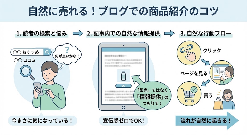 ✔ 宣伝は不要。商品名が自然に出てくるだけで十分