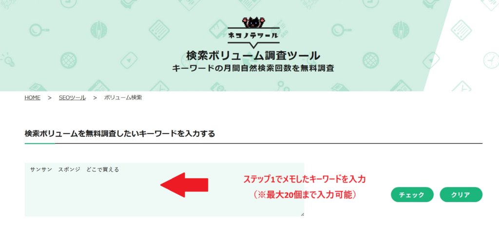 私は検索ボリュームの確認に ネコノテツール を使っています。
