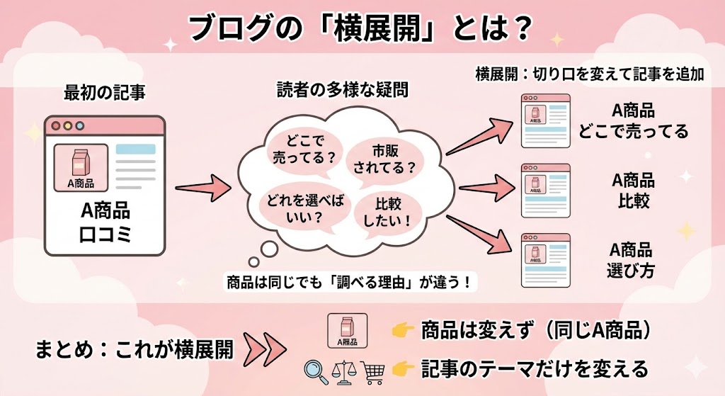 と、切り口を変えた記事を追加していくのが横展開です。
