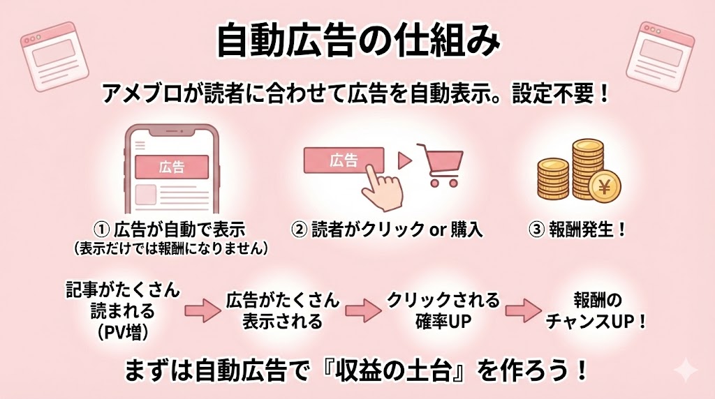 - 自動広告は、何もしなくても働く収益の土台
